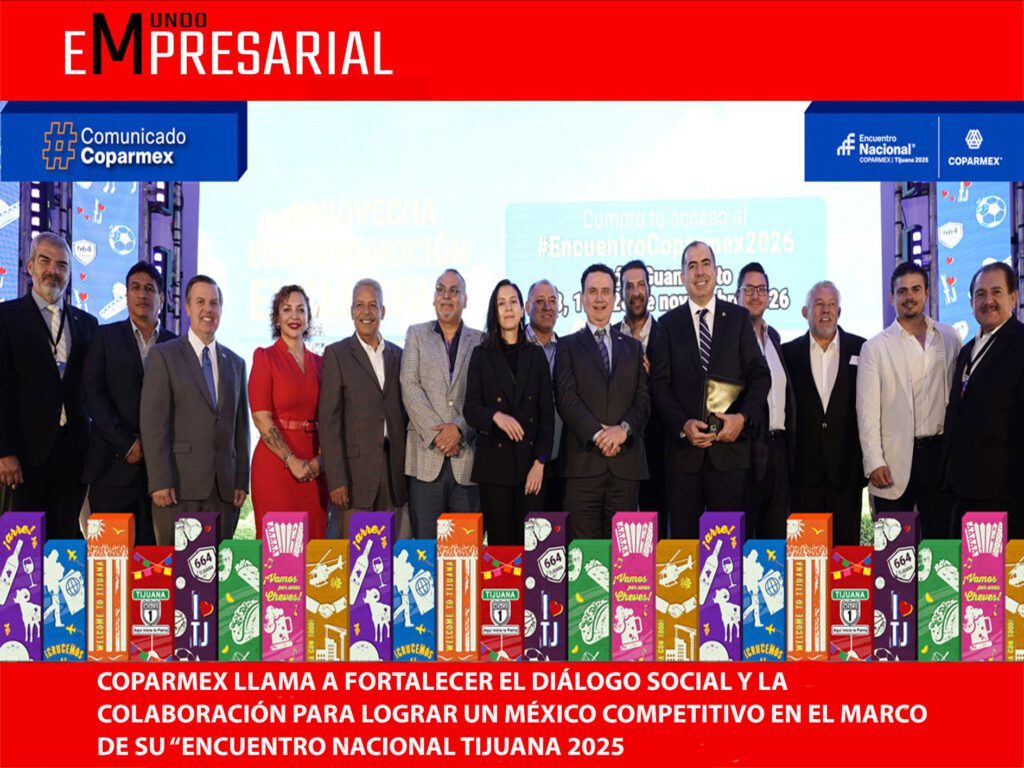 Con un fuerte llamado al diálogo social entre Empresarios, Trabajadores y Gobierno paraconstruir un México más competitivo, justo e inclusivo, y enfrentar los desafíos económicos ysociales del país, arrancó el Encuentro Nacional COPARMEX Tijuana 2025, uno de los forosempresariales más relevantes del país. La jornada reunió a representantes de más de 100ciudades, líderes del sector […]