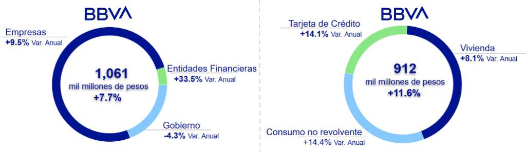 En lo que corresponde al sector empresarial, el banco alcanzó un saldo de 722,000 millones de pesos en crédito, lo que representa un crecimiento interanual del 9.4%.