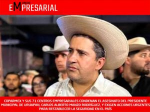 Desde la Confederación Patronal de la República Mexicana (COPARMEX) junto con nuestros 71 Centros Empresariales, condenamos enérgicamente el asesinato del